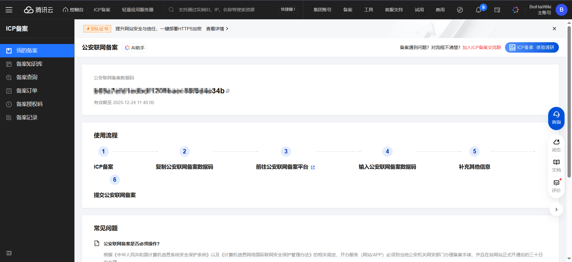在云服务厂商通过后会再转交给工信部,工信部会给网站负责人发送验证码,这里需要前往24h内前往给你发送的链接进行回填,超时订单就作废